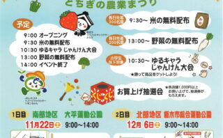 開催日 11月16日(日) 9:00~15:00 同時開催 •新庁舍開庁記念公演 •栃木市都賀文化祭 •都賀子連60周年 •都賀町のこどもを育む会20周年記念事業 会場 都賀総合支所周辺 雨天決行(荒天中止) イベントス […]