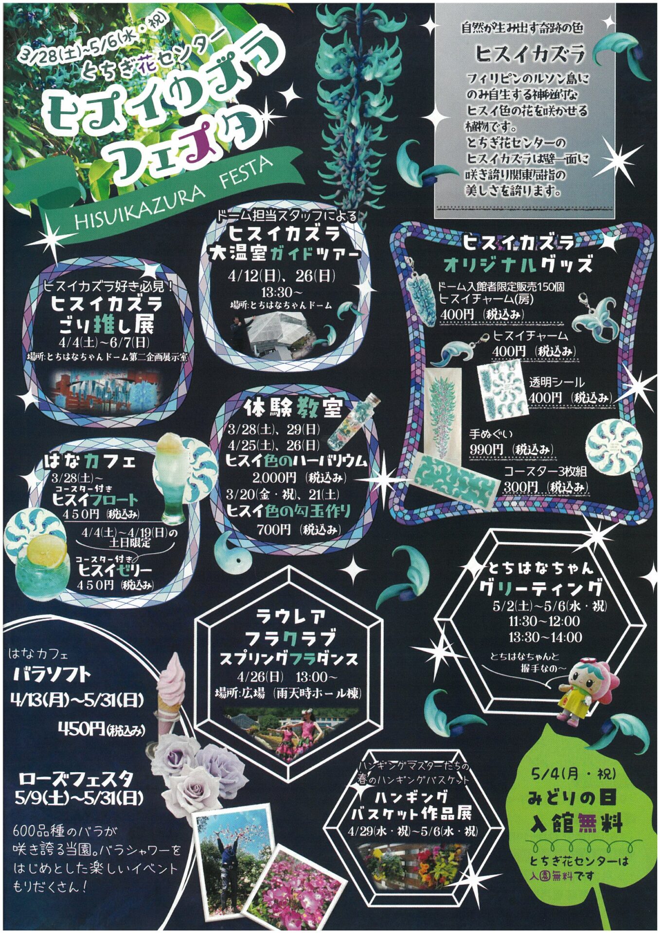 とちぎ花センターのヒスイカズラは壁一面に咲き誇り関東屈指の美しさを誇ります。