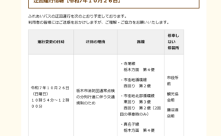 迂回運行にあたって、道路状況等によりバスが遅れることがありますので予めご了承ください。当日の運行状況につきましては、各運行会社にお問い合わせいただくか、バスロケーションシステムをご確認ください。 各運行会社のお問い合わせ […]
