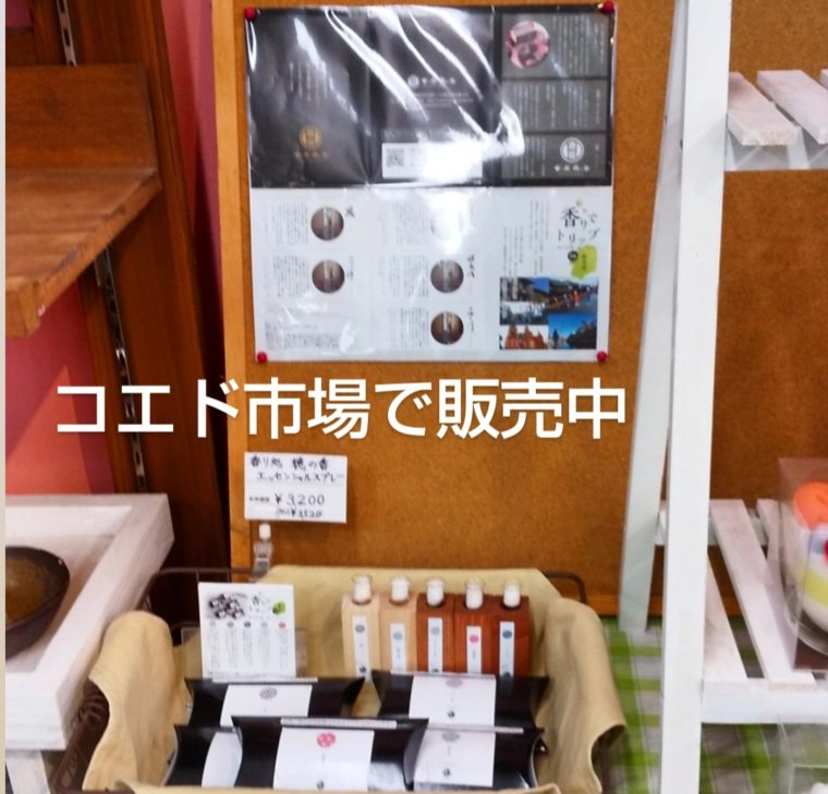 香りでトリップIN栃木市の香り、5種類を商品化、コエド市場の店頭で販売しています。
